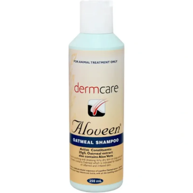 Dermcare Aloveen Oatmeal Shampoo soothes and cleanses itchy, dry skin in dogs and cats. The superfine colloidal oatmeal effectively treats inflamed and irritated skin while aloe vera rejuvenates and hydrates, leaving a calming effect. This unique formulation helps improve skin health by replenishing moisture and removing allergens