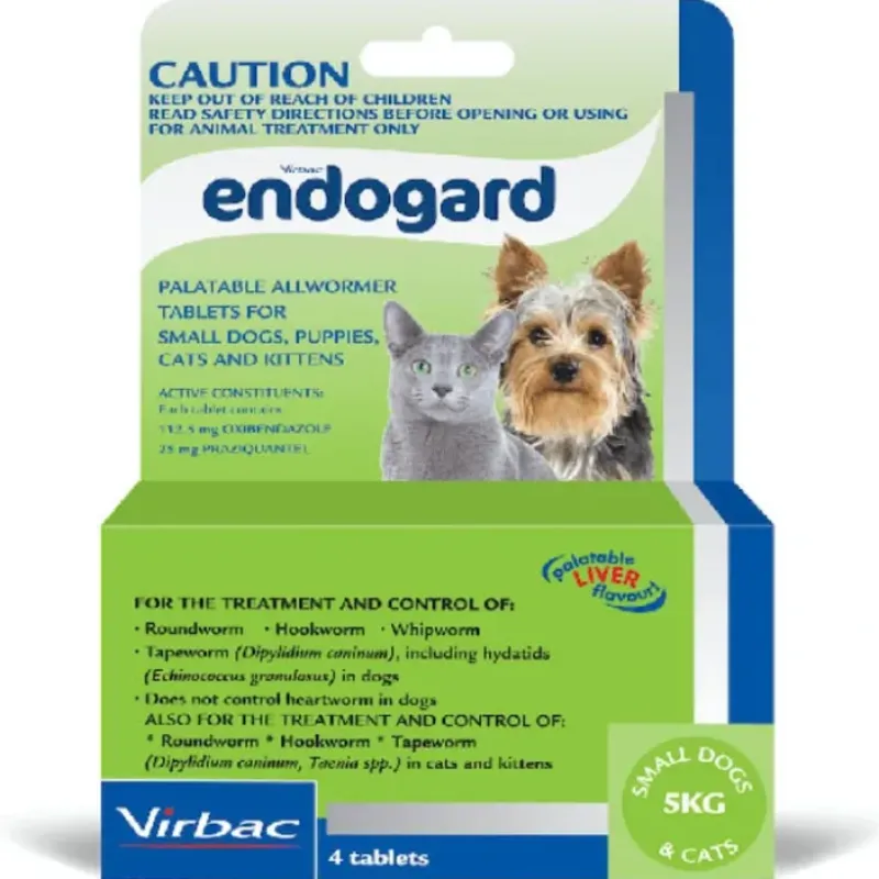 Endogard is a palatable Allwormer treatment for Puppies, Small Dogs, and Kittens & Adult Cats up to 5kg. This tablet is liver flavoured and may be administered directly as a treat or crushed and put on food.