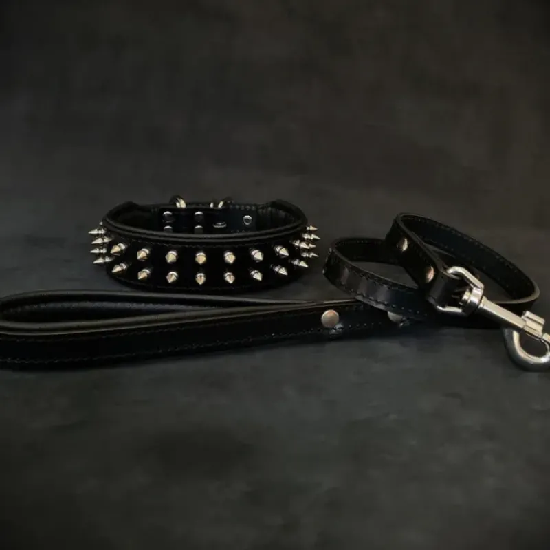 The leash is 43.3 inch (110 cm) long and 0.8 inch (2 cm) wide. It is made out of the same leathers as the collar and has a padded handle for maximum comfort.