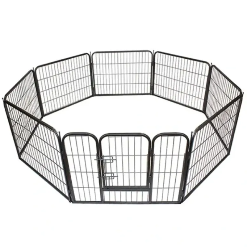 Heavy Duty Small Puppy Pen HP-061 is made out of powdercoat tubular steel. This is a high quality heavy duty small puppy pen. Great for puppies and adult dogs. Multiple pens can be joined together to create a larger enclosure. Easy locking rod design makes for an easy set up. Can be connected in a straight line to block off an area or round to create a pen enclosure. This heavy duty small puppy pen has a large locking door for easy access in and out of the pen for both pet and owner.