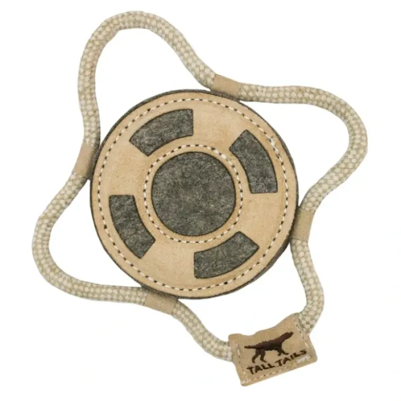 Whether your pup wants to play a rousing game of fetch or tug-of-war, this Natural Leather Lifebuoy Tug Toy is made with you and your pup in mind. No toxic chemicals, artificial coloring, or simulated flavoring are used in the production process. The size of this toy makes it ideal for medium and large dogs, who love to retrieve and tug, but is not recommended for aggressive chewers.