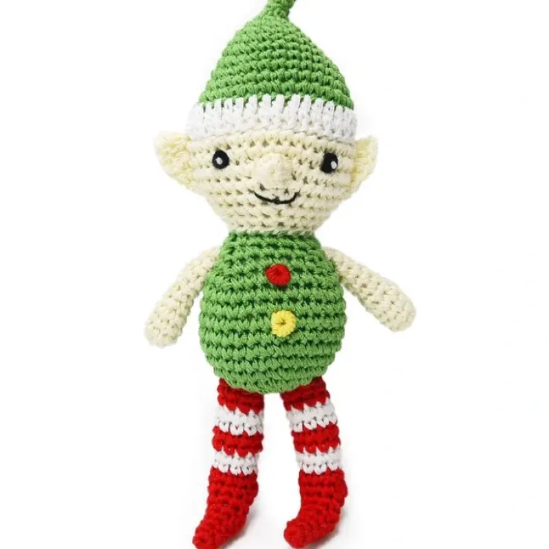 Elf designed dog crochet toy. Handmade interlace cotton thread, designed to be flexible, durable, and improves dental health by removing deposits of calculus. Add all that with a squeaky inside means hours of fun!