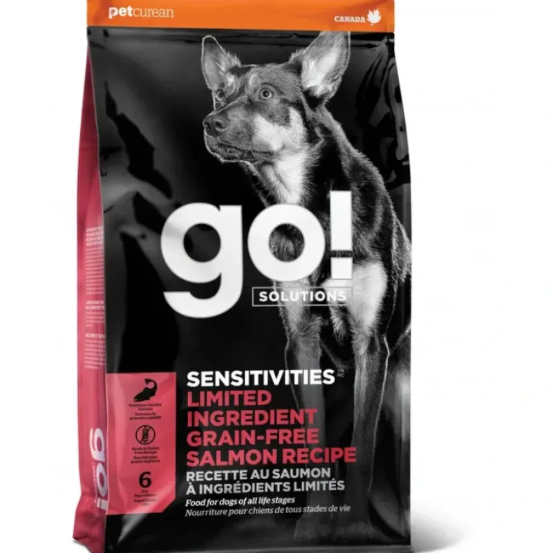 Our GO! SENSITIVITIES recipes were created for pets with specific dietary needs. But all dogs will love them! Carefully prepared with all the nutrients your dog requires with as few ingredients as possible, including premium quality salmon as a single source of fish protein, and nothing added thats not needed.Guaranteed Analysis