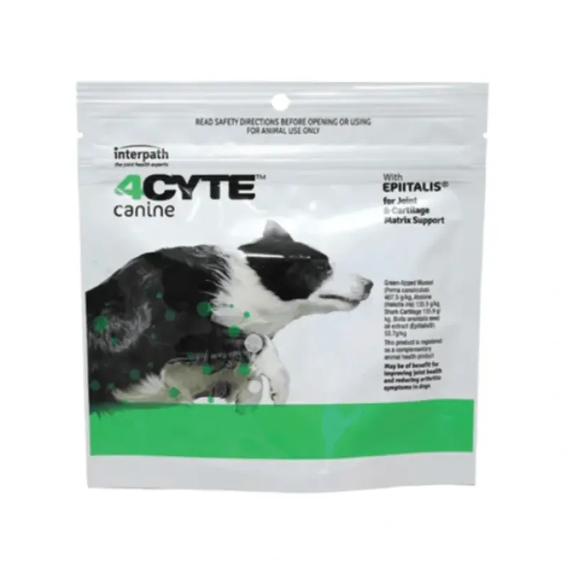 4cyte canine is the revolutionary advancement in joint health. 4cyte contains Epiitalis, which is a plant oil based product known for its ability toproliferate chondrocyte cells for cartilage regeneration. In simpler terms… this stuff works and it works well!Given in your dogs food, 4cyte is so simple to give to your dog! It can be used after joint damage, surgery or even better use it in athletic or other large breed dogs that are prone to joint problems.