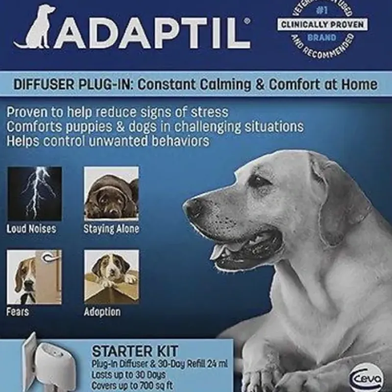 The Adaptil Diffuser assists in calming your dog in even the most stressful situation. The Diffuser is a discrete plug-in which bathes the home in a synthetic copy of the canine appeasing pheromone, a natural product proven to comfort both puppies and adult dogs. Releasing the comforting pheromones into the local environment, with lasting effects up to 4 weeks.