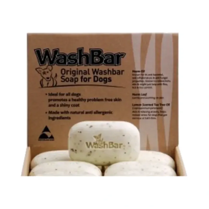 Original WashBar Soap is ideal for all dogs. Good old fashioned soap that cleans your dog, leaving it smelling fresh and lemony. Our active ingredients are natural with anti allergenic, anti-inflammatory and insecticidal properties. The soap is designed to treat skin disorders, repel fleas and soothe sensitive skin.