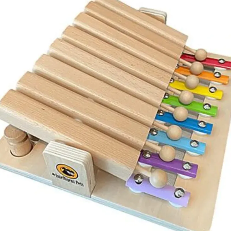 *** Piano has been selected as winner of the Interactive Toy Product of the Year award! *** Let us present your pets a new challenge! Unlike in the flat board puzzles where the dog or cat moves tiles with its nose or paw to get the reward, in this new game it is required to work vertically and horizontally to get the treats. The game trains concentration and dexterity as well as boosting its natural instincts of curiosity, a drive to play and sense of smell. Eight wooden pipes in which the treats can be hidden, when pushed down will drop off their content as a reward to the pet. In the same moment on the xylophone the sound will be generated. The pet is “playing” its song 🙂 The puzzle can be varied in regards of the difficulty level. To make it more difficult place pegs in the row below the pipes and the player needs to remove them first so the tubes can be pushed down.